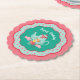 Personalise this fancy tea party themed birthday party paper coaster with a name or phrase if desired. Designed for tea-loving ladies of all ages. Created with a scalloped flower border and teapot and pink macaron cookie accents. See more party event items in this same collection.
