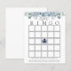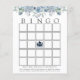 Baby shower bingo card featuring a watercolor cascade of blue florals and a blue teapot. A fun way to interact with shower guests while the mum-to-be opens her gifts.