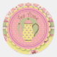 Retro kitchen of mix and match prints of ditzies and whimiscal defines design featuring ribbons and teapot and teacup medallions.