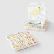 The coasters are gorgeous, a quality feel and heavy weight. They look like a precious archeological find. A rustic stone juxtaposed with a modern floral black and white print. I like the way the print goes slightly imperfect on the cut stone edges giving them a kind-of natural beauty.