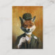 This card is illustrated with a quirky Mr Fox in his fine suit drinking a cupo of tea,