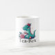 A cute cartoon dinosaur enjoying a warm cup of tea, surrounded by blooming roses and sparkling stars. The cheerful dino, with pink blush and a flower crown, radiates charm and cosiness—perfect for designs that spread joy and relaxation.