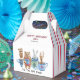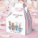 Grab your friends and your favourite mug. It's "Tea Time With Friends". These delightful characters are just hanging out and drinking tea. There's an owl, bear, rabbit and deer, all with colourful mugs. On the side of this favour box, there are blue and red pinstripe accents. This box can be customised.
