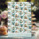 Turquoise hummingbirds flit amongst tea sets against a mint and white striped background. Your name at the bottom.