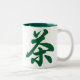 A mug with the Japanese kanji (character) for "Tea" in dark green colour.
