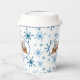 This whimsical design features two gray mice sharing a pot of tea. The background design is a pattern of blue snowflakes and you can customize the text.