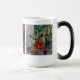 A lovely Magic Mug decorated with tree original artwork prints: flowers, ripe grapes, and a beautiful pitcher with a lonely red flower. Care for some tea from this adorable mug?