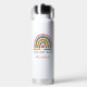 A fun teacher water bottle with a rainbow and the words, teach, love, inspire. Personalize it with your teachers name for a nice teacher appreciation gift. Same design on front and back. Designed for you by Blackberry Boulevard.
