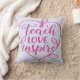 Beautiful script calligraphy in deep plum saying “Teach. Love. Inspire.” with a heart or pencil divider line. Perfect for teacher gifts, classroom decor, or inspirational apparel.