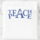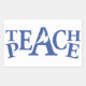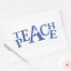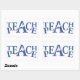 Simple text teach peace blue lettering with a single dove in the centre, the symbol of peace, peaceful slogan stickers © Designed by Sarah Trett www.sarahtrett.com for www.mylittleeden.com