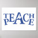 Teach peace poster in blue and white. Background came be changed if required currently white. © Graphic art and design by Sarah Trett. www.sarahtrett.com for www.mylittleeden.com