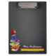 This cute clipboard is perfect for teachers. The design features a hand drawn stack of books painted with watercolors with an apple at the top. To the right is a yellow ruler illustration with a teacher's name above it in a modern white handwritten typography for you to personalise. The background and back of the clipboard is a black chalkboard texture. Great back to school and teacher appreciation gift idea.
