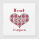 Thank you magnetic card for teacher appreciation day with inscription "Teach, love, inspire" and heart with cute apple pattern.