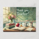 Here’s your watercolor-style Teacher Appreciation Week postcard! 🎨📚 The image features a vintage chalkboard with elegant white calligraphy reading "Thank You, Teacher!", along with classic apple and book elements in a cosy classroom setting.