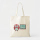 A teacher bag featuring an illustration of a red owl standing at a chalkboard. Owl has a blue chevron belly. Persoanlize with your name.