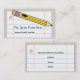 A teacher business card featuring an illustration of a yellow pencil on a sheet of lined notebook paper. Personalise the information on front and back.