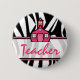 A button for teachers featuring a black and white zebra print background. Logo of The Pink Schoolhouse and matching hot pink trim. Customisable text in sheer centre seciton reads "Teacher."