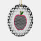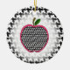 A Christmas ornament for teachers featuring a background of houndstooth. Matching apple at centre outined in pink.