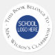 Personalised teacher bookplate label with school logo. Text says "This Book Belongs To" personalised with the teacher's name for easy labelling of your classroom books or other supplies. Use the design tools to further customise your own unique design.