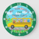 Teacher Classroom Cute Animals on Bus Custom Name Large Clock