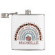 The flask itself is fine. It’s a cheap flask, obviously bought in bulk, however am prepared to overlook that. Given that it is a personalized item, I would have liked to have seen gift boxing instead of the generic packaging. Terrible printing, and/or quality. It’s a cheap, tacky vinyl. It is not cut straight and is also applied in a way that it is overhanging the bottom, causing the glue to catch on items and it will eventually roll and tear, damaging the wrap.