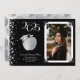 Celebrate the new teacher graduate from education school with this silver and Black teacher apple with graduation hat, graduation announcement! Elegant with a vintage photo border and silver confetti accents! Perfect for anyone graduating from college and becoming a teacher!