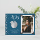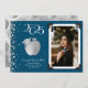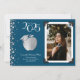 Celebrate the new teacher graduate from education school with this silver and navy blue teacher apple with graduation hat, graduation announcement! Elegant with a vintage photo border and silver confetti accents! Perfect for anyone graduating from college and becoming a teacher!