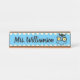 Cute wise owl line drawing desk name plate monogrammed with your name, teachers name, librarian, stylists name or other professionals name. Perfect for sitting on your work desk,classroom desk,work station or reception area. Blue background colour can be changed to your own favourite colour.