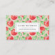 Colourful patterned business cards for teachers, educators, or tutors feature a pattern of red apples and green leaves on a blush pink background. Personalise the front with two lines of custom text, and add your full contact details to the back. Perfect for remote or distance learning, private instruction, virtual tutoring, education administrators and more.