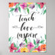 Teacher Gift Teach Love Inspire Quote Floral Text Poster