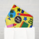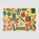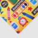 Gift tissue paper for teachers with image of colourful crayons and other school supplies against a yellow background.