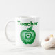 A clean modern teacher design featuring a layered green apple with concentric ring detailing and a bold Teacher title in green typography. The centred composition creates a fresh and calm, balanced look that stands out on a white mug. A thoughtful gift for educators, new graduates, or anyone proud of the teaching profession