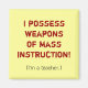 Teacher says, "I possess weapons of mass instruction!" in red letters. (I'm a teacher.) in black. Change the background colour as well as text font and text colours!