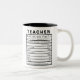 Teacher Nutrition Facts Statistics Funny Two-Tone Coffee Mug