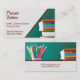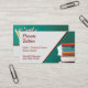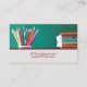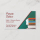 A striking business card featuring a stack of books on a teal background. This great card would work well for private tutor services, exam study coaching businesses or other education organisations. Easy to personalise with your own company information.
