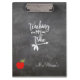 Custom tribal inspired teacher clipboard with red apple and "teaching my tribe" white typography script fun quote on chalkboard background. Personalise it with your teacher's name!