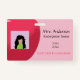 Modern employee identification horizontal badge for teachers and any school staff , featuring part of a big red apple . Personalise it with the educator's photo , name , job title , academic year ,school name and address . The rectangle in the back is for the member's signature or for a bar code . Click on the collection to see a vertical version of this design .