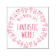 Teacher says fantastic work personalised self inking stamp with teacher's name. This positive praise stamp is decorated with a fun illustration of stick figure children jumping for joy forming a circle. It's personalised with two custom text segments. Both can be modified, replaced or deleted to create the perfect stamp for your needs. Customise it with your name and praise or encouragement phrases of your choice. The red ink colour is just one sample option out a selection of colours including black, blue, green, yellow and more. Pick the colour that meets your needs the best.