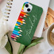 A cute phone case for teachers featuring a green chalkboard background with colourful coloured pencils and "teacher" in script.
