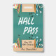 Teacher student hall pass with green background and art supplies. Comes with lanyard attachment. Great for elementary school and middle school classrooms.