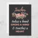 Teacher Takes A Hand Opens A Mind & Touches A Heart design. This is a short sentimental quote which is great as a gift for Teacher Appreciation. Also suitable as a general teacher gift for Birthday, Christmas or Valentine's Day.
