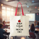 Red apple teacher tote bag | Keep Calm and teach on. Cute design for preschool, kindergarten, grammar and elementary school teachers or tutors. Funny teaching gift ideas. Book bag with personalizable text.