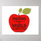 Teachers change the world one child at a time inspiring typography script quote poster with a big red green apple.