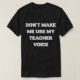 This funny t-shirt reads: Don't Make Me Use My Teacher Voice. A great gift for any teacher. A playful and humourous way for someone, often a teacher or someone in a position of authority, to jokingly assert their authority or command attention.