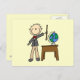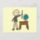 Stick figure teacher design features a male stick figure with a pointer and a world globe. Customise it with a name or other text!