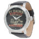This humourous wall clock playfully refutes a common misconception about truck driving. Against a black background with a warm yellow rim, it features a semi-truck silhouette in white with red banner accents. The witty text proclaims: "MY TEACHER WAS WRONG I DO GET PAID TO STARE OUT THE WINDOW ALL DAY". It's a lighthearted gift for any truck driver who enjoys the scenic aspects of their long hauls. The design tool can also be used to add custom text if you want your name or company on this clock. You can customise the colour of the frame to any colour you desire by going into the design tool.