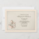 An elegant invitation with a hint of old world charm featuring a stack of books, one of which is open, with a pen by its side. The woven texture centre is framed in buff.