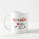 Retro festive Christmas design on a coffee mug for the teachers we love and appreciate. “Teachers Always Make The Nice List” words printed on mug.