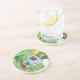 I'm not sure how much moisture these will soak up, haven't had a chance to try them out, but they look good and I like the cork backing. The printing is fine ~ and really looks cool with an artisan's hand made "Hurricane Martini" glass sitting on top of my painting (on the coaster) in my studio.