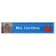 Stylish school teacher's desk nameplate done in blue, with graphics of a red apple, on the far right side. Add your own photo, on the left side of the nameplate and personalise the white text with your name. Makes a great back to school gift idea.